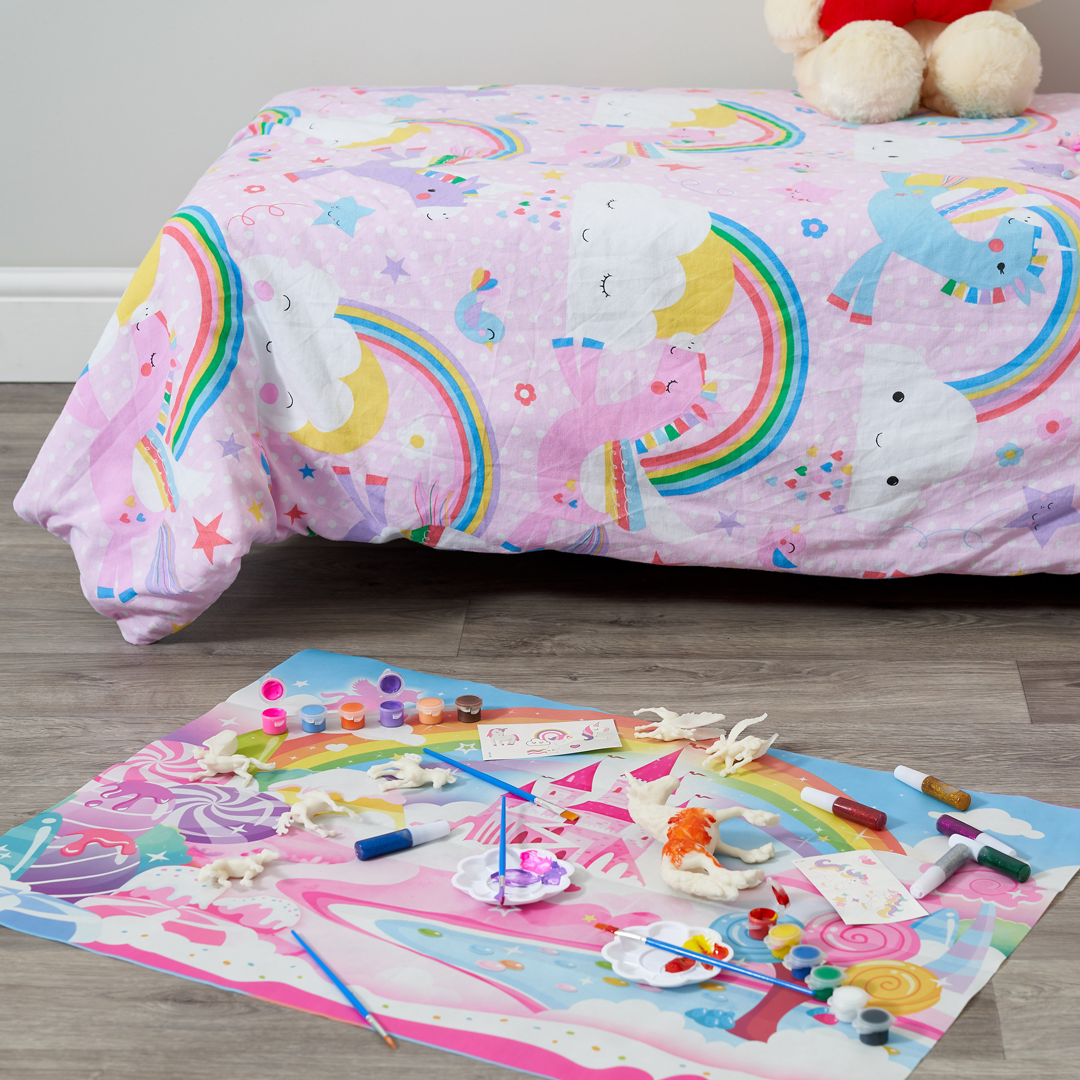 Mess-Free Creativity: We understand that creative endeavours can sometimes be messy, but not with our Unicorn Paint Set. The provided background scene doubles as a protective tablecloth, safeguarding surfaces from paint spills and stains. The apron ensures that your child's clothes remain clean, allowing them to focus fully on their artistic creations. This set is perfect for parents seeking a hassle-free way to encourage their children's creativity, offering a clean, organized, and delightful painting experience. Watch as your child brings their unique vision of unicorns to life, exploring a world where art and imagination beautifully intertwine.