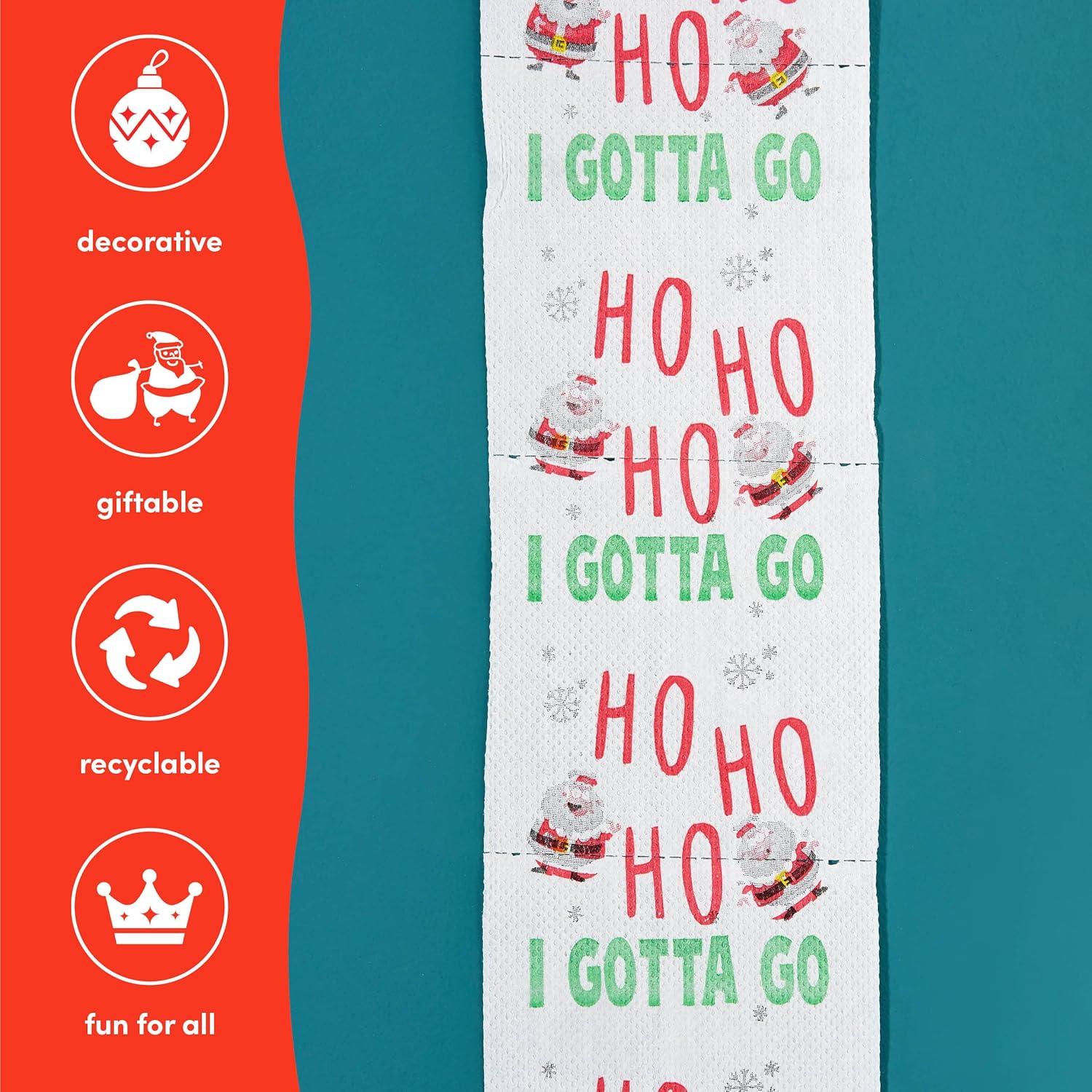 Emergency Stash with a Twist: Our novelty toilet roll not only serves as a backup but also adds a whimsical touch to your bathroom. Featuring the phrase "Ho Ho Ho, I Gotta Go!" on each sheet, it's a fun and unexpected surprise for your restroom.