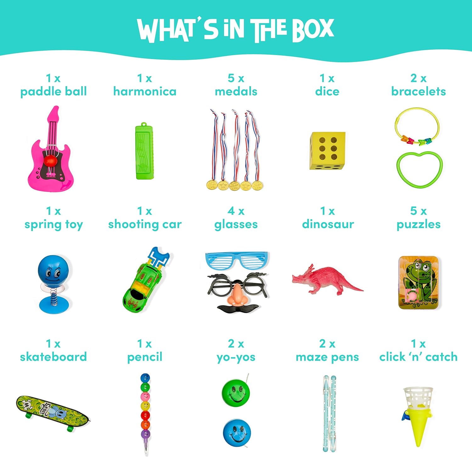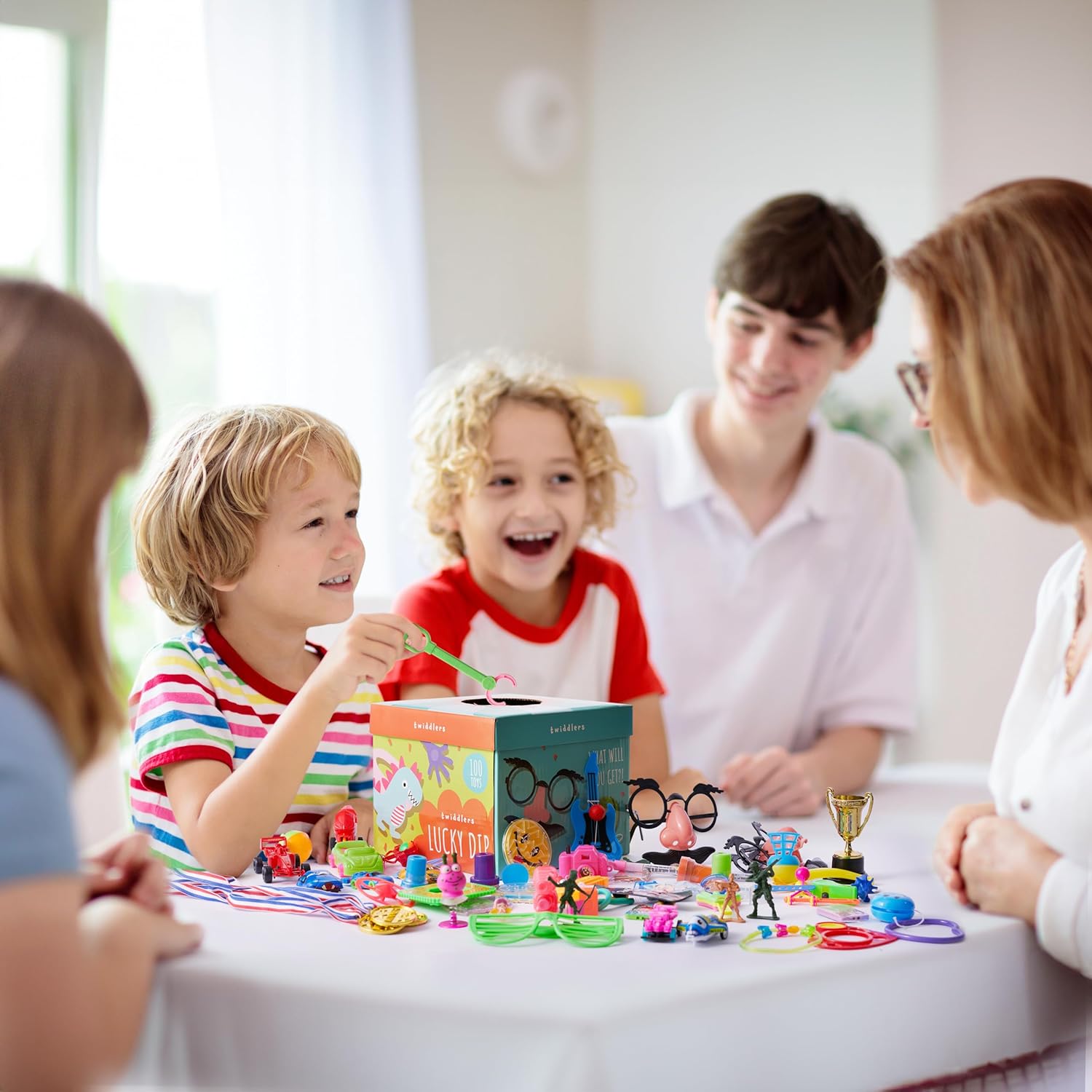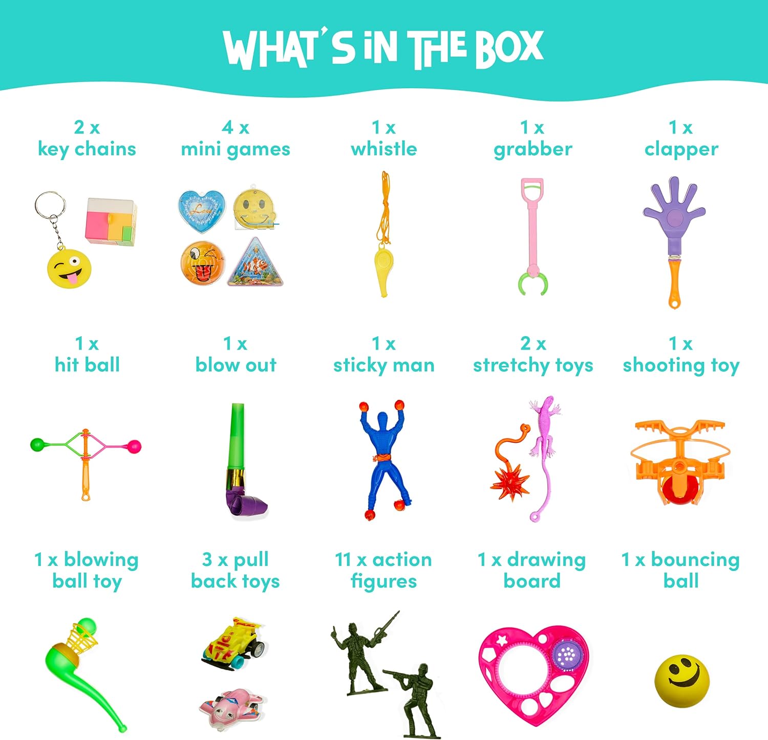 Perfect for Parties and Guaranteed Satisfaction: Our Lucky Dip Box isn't just a collection of toys; it's a bundle of joy and excitement for children and guests at any party or event. Ideal for playing games, filling goody bags, or giving out as party favours and Christmas fillers, this set caters to both boys and girls with a wide range of interests. Every dip feels like hitting the jackpot, sparking spontaneous dance parties and uncontrollable laughter. Choose our surprise gift box toy set for a hassle-free and stress-free toy selection process, and rest assured that you're providing high-quality, diverse entertainment that everyone will love.