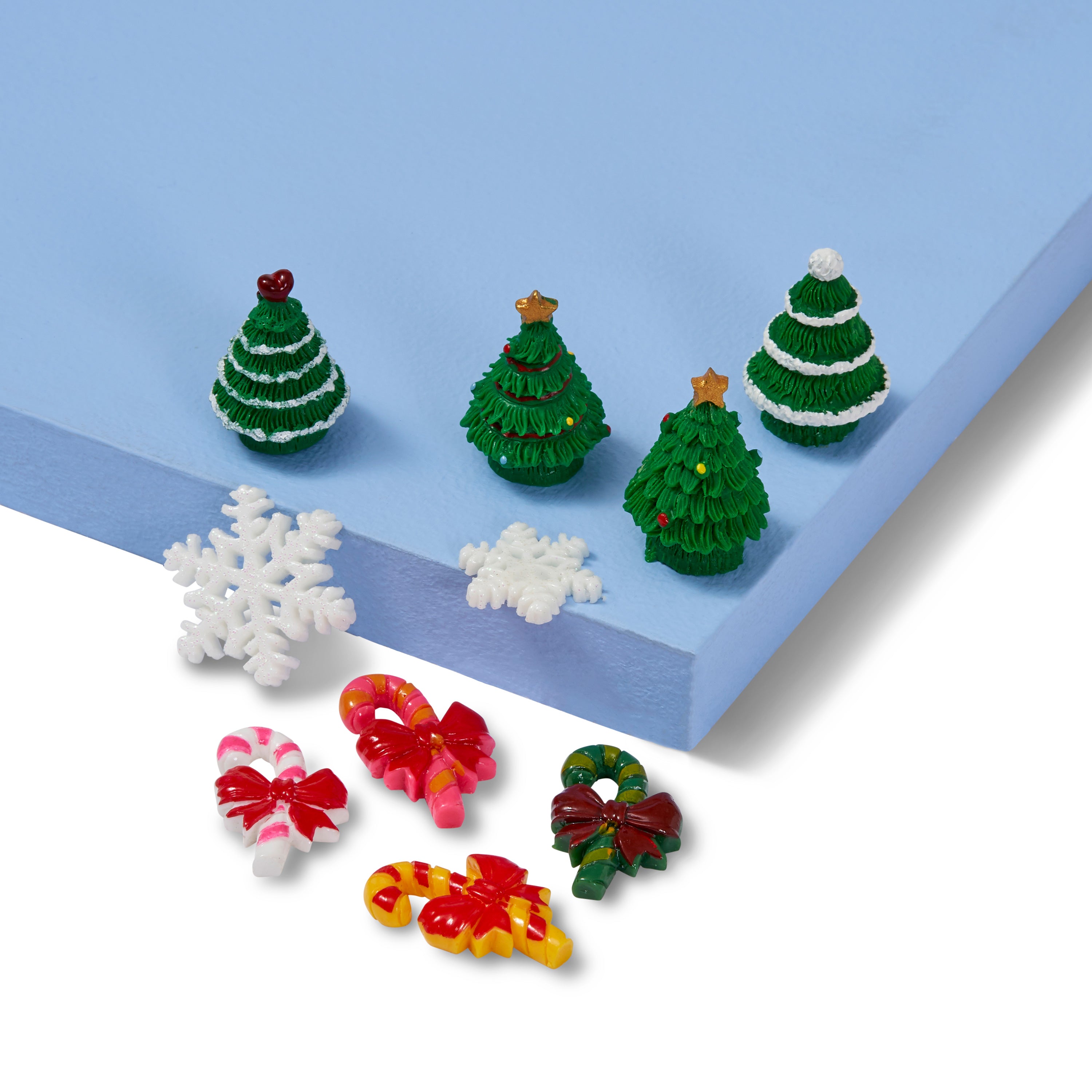 A Diverse Assortment of Festive Cheer: This set includes a delightful array of Christmas-themed decorations, bursting with traditional festive colours like green, red, pink, yellow, gold, and white. Each figurine is uniquely designed, ranging from charming snowmen with bags and top hats to Santa's hat, presents sack, stockings, stars, bells, candy cones, moons, benches, trees, snowflakes, and even a bag of artificial snow. This diverse assortment allows you to create your very own winter wonderland, bringing the joyful spirit of Christmas to every corner of your home or office.