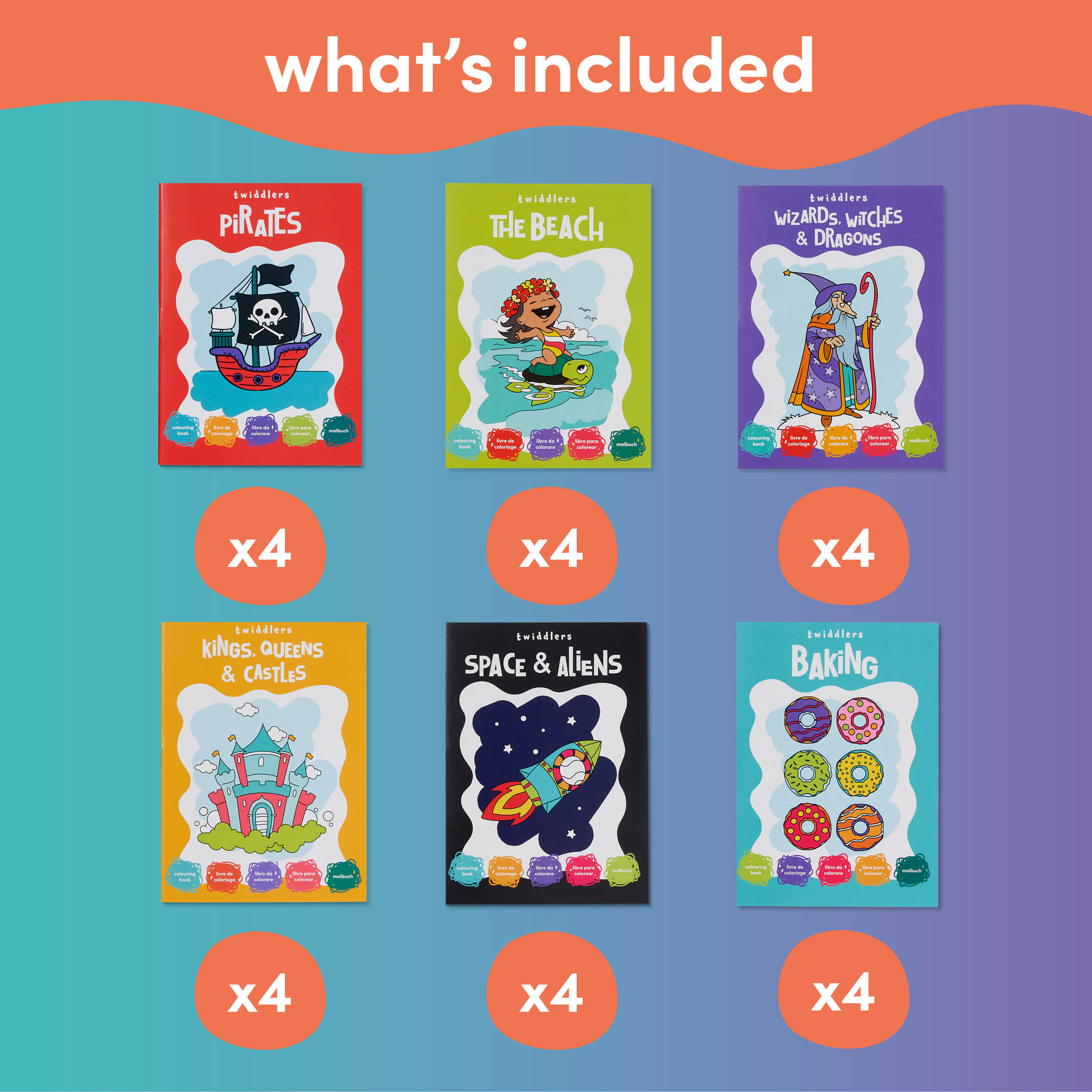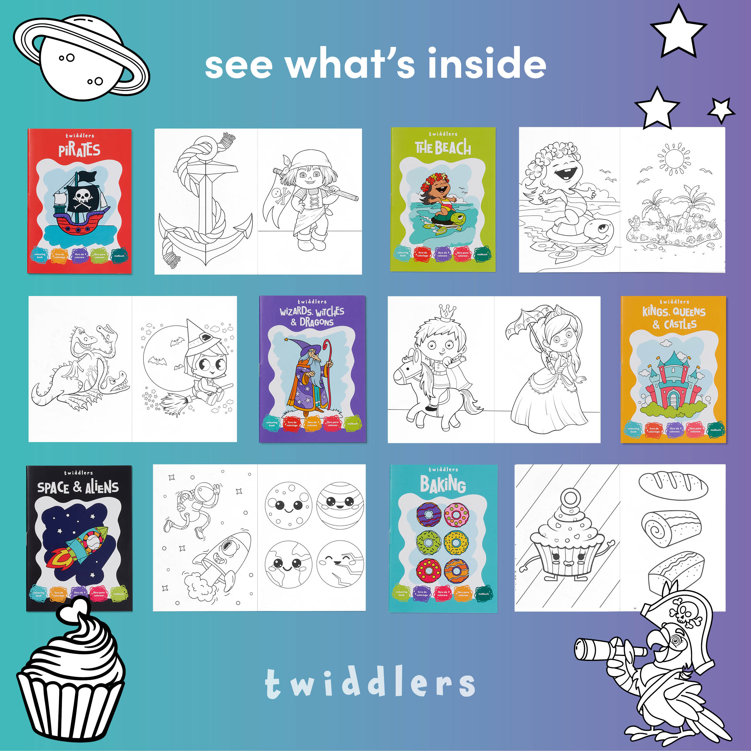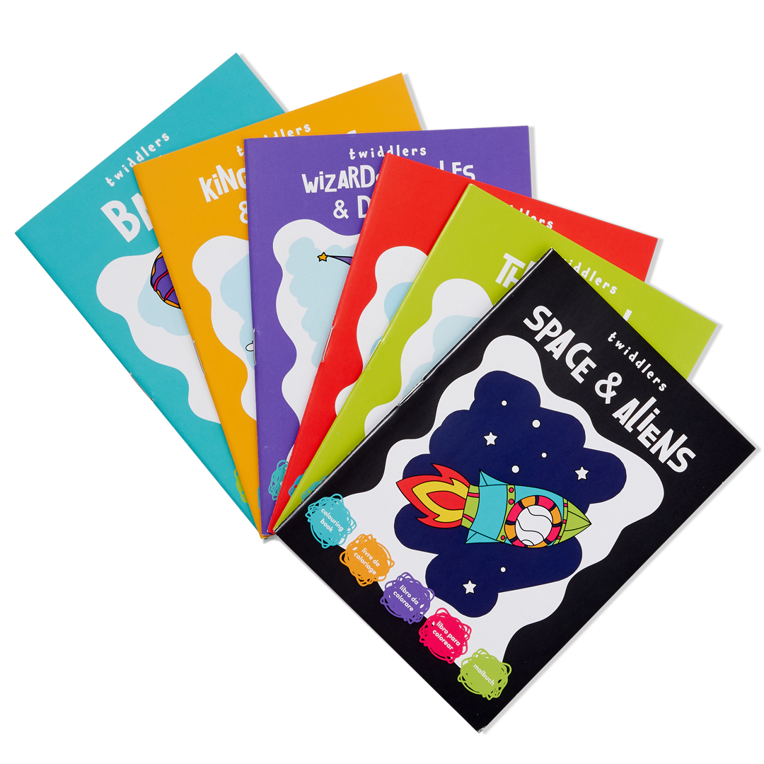Diverse and Fun Themes: Dive into the world of imagination with our set of Mini Colouring Activity Books, each offering a unique adventure. These books come in six exciting themes including ‘Kings, Queens & Castles’, ‘Wizards, Witches & Dragons’, ‘Baking’, ‘The Beach’, ‘Space & Aliens’, and ‘Pirates’. Each theme is designed to captivate and stimulate young minds, offering endless opportunities for creativity and fun. Perfect for kids who love exploring different worlds through colouring.