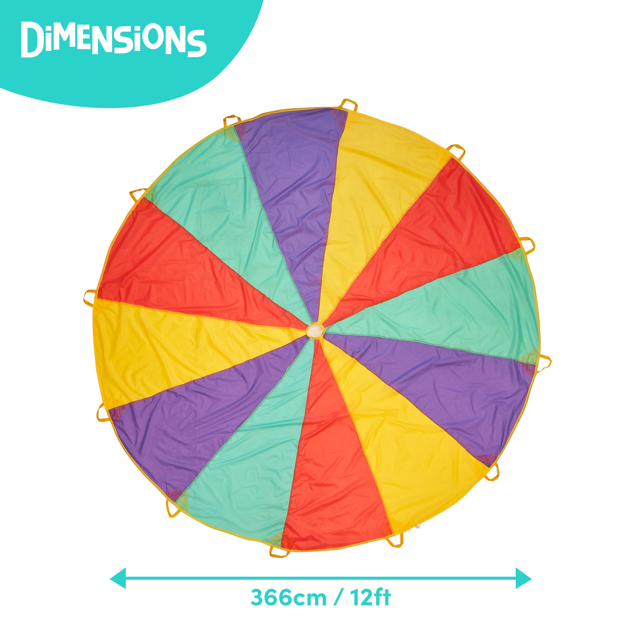 Colourful and Imaginative Fun: Dive into a world of playful colours and joy with our large 12ft play parachute. Designed to capture the attention and imagination of children, this parachute comes in a kaleidoscope of red, green, yellow, and blue hues. Perfect for party games and entertainment, children will be thrilled with activities like waving the parachute, creating merry-go-rounds, or building whimsical tents. It's not just a play accessory; it's a gateway to a world of creativity and teamwork.