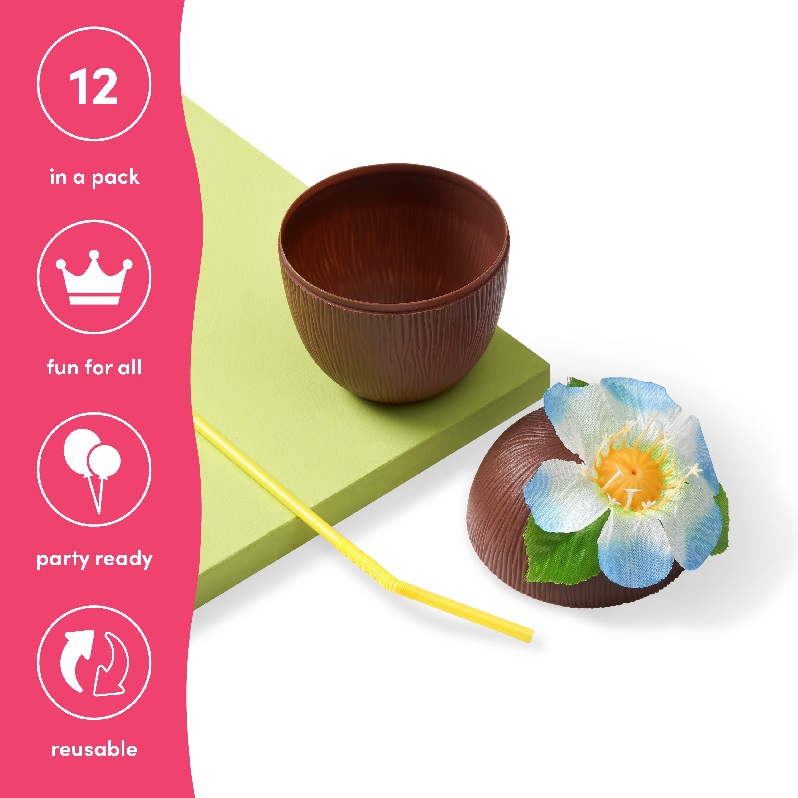 Tropical Paradise Vibes for Your Party: Bring the spirit of the islands to your next gathering with our set of 12 Reusable Coconut Cups with Straws. Designed to emulate a tropical oasis, each plastic coconut cup is adorned with vibrant flowers and comes with a matching straw, making them the perfect addition to garden, pool, or beach parties. Imagine sipping your favourite beverage from these cups as you mingle with friends and family, the tropical ambiance enhancing every moment of your celebration.