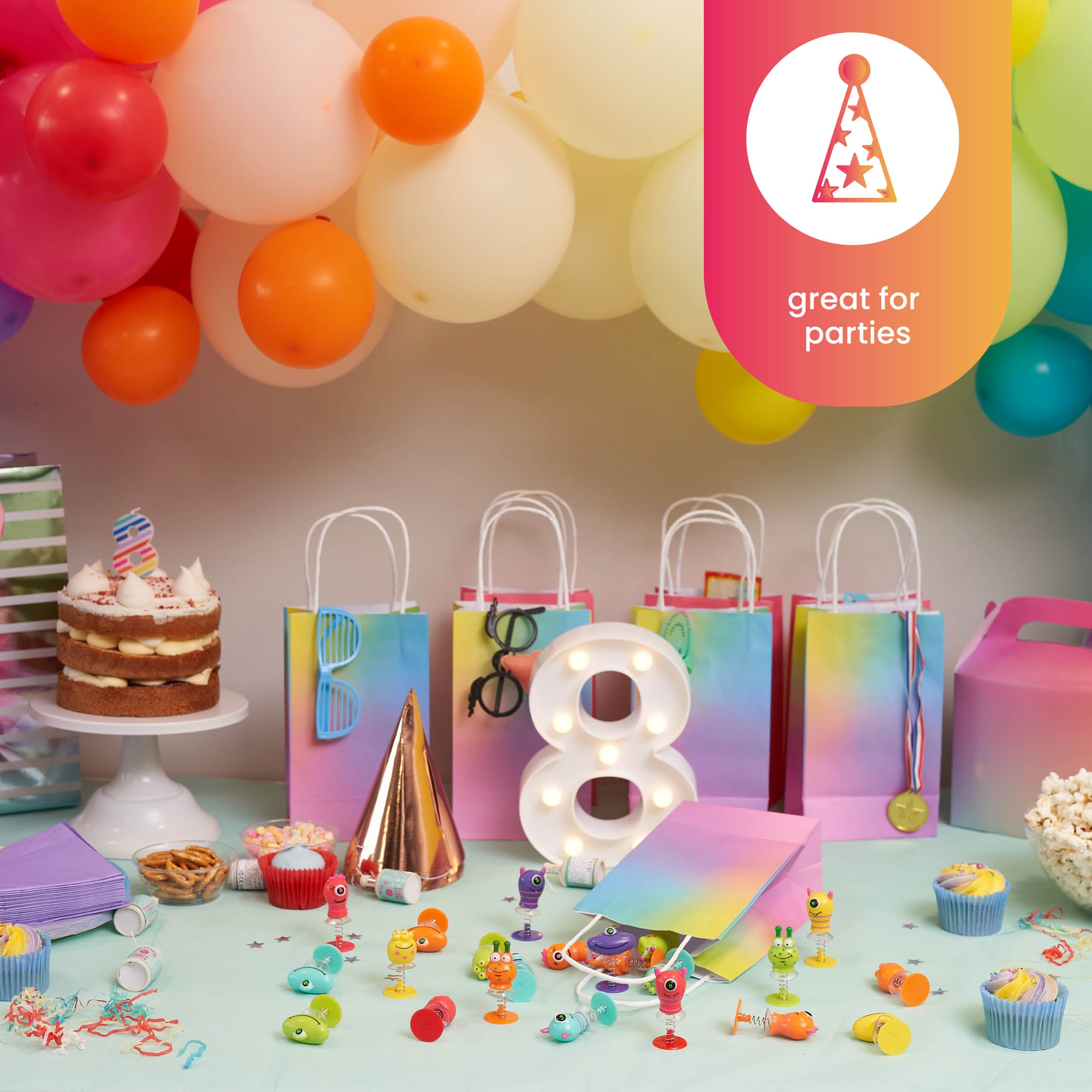 Perfect for Parties and Gifts: Ideal for party bag fillers, party games, piñata surprises, stocking stuffers, and prizes, these pop-up toys are versatile and suitable for a variety of occasions. Weighing 388.6 grams per set and measuring 22 x 20 x 5 cm, they are conveniently sized for easy storage and transport. Available in an assortment of colours – green, red, blue, orange, yellow, and purple – and made from quality PP material, these pop-up monsters are both durable and appealing. Each set comes with a poly bag for tidy storage, making them an ideal mini gift for kids and a delightful addition to any party or event.