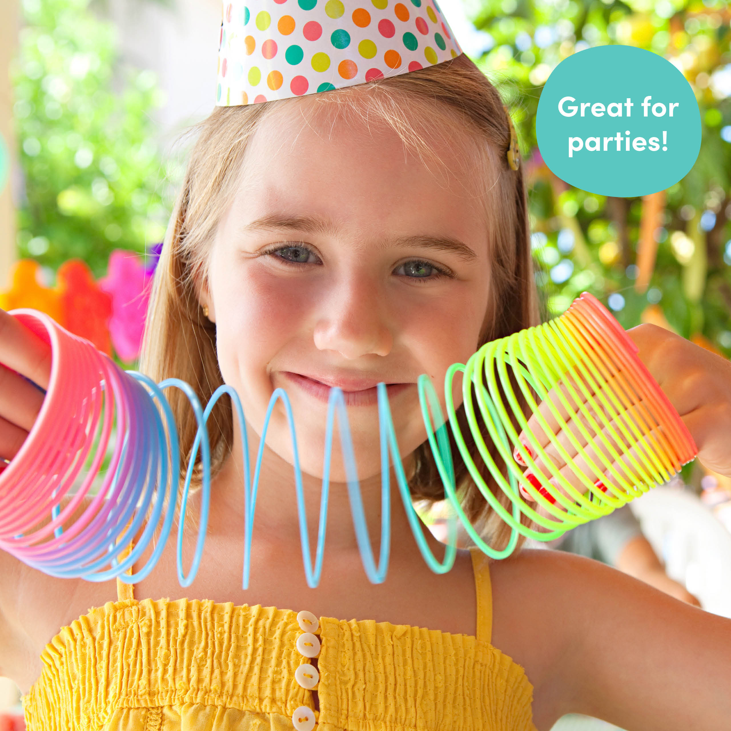 High-Quality, Durable Fun: Crafted with premium quality materials, our rainbow magic springs are designed to withstand enthusiastic play. The bright and happy colours of the springs remain vibrant, even through rough handling. Their smooth texture not only makes them appealing to touch but also simplifies the process of pulling and stretching, ensuring easy untangling without fuss. As party favourites, these springs promise to be the highlight of any birthday party or festivity, as kids invent creative games and enjoy hours of action-packed fun. With their delightful appearance and sturdy build, these rainbow springs are a joyful addition to any toy collection.