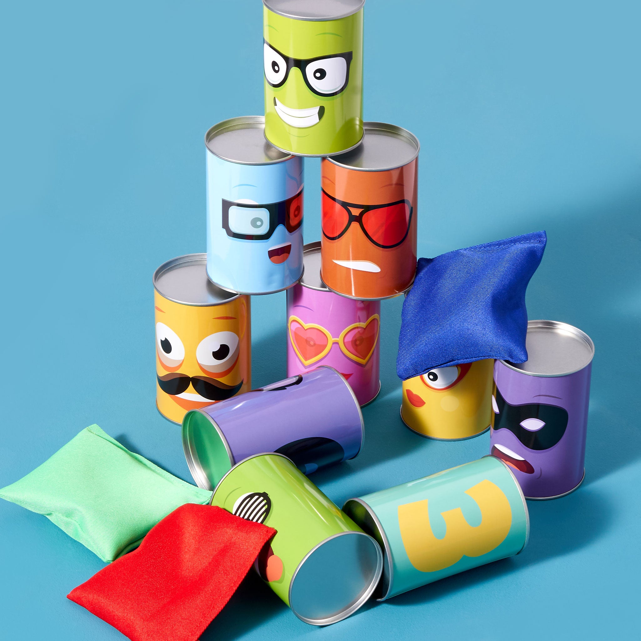 Ideal for Parties and Educational Play: Our Tin Can Toss Game is not just fun but also visually appealing, designed with vibrant monster faces and numbers on each can. The bean bags come in bright, eye-catching colours, adding to the excitement and making this game a must-have for keeping children entertained. Perfect for birthday parties, school events, or any occasion where kids gather, this game not only provides entertainment but also helps in developing hand-eye coordination and basic counting skills in a playful and interactive way.