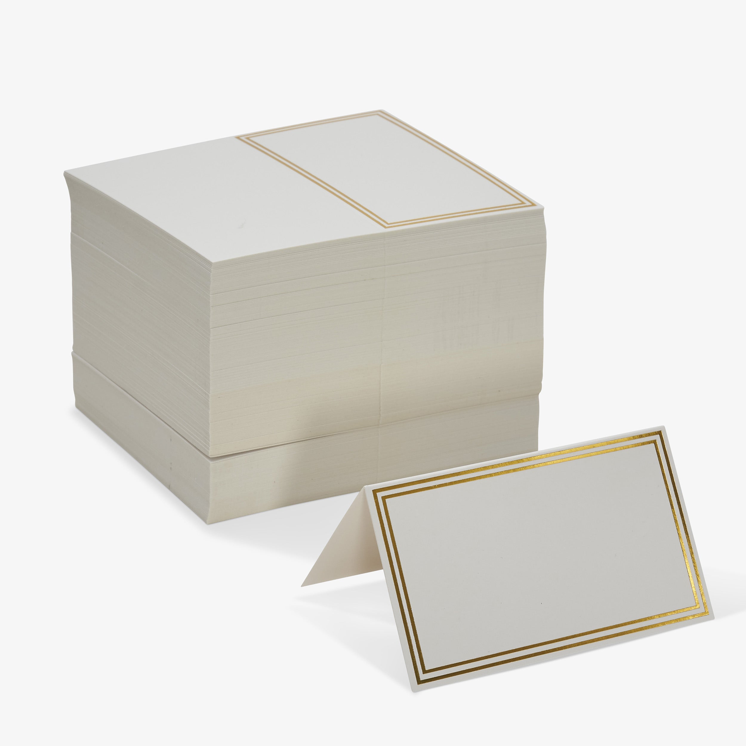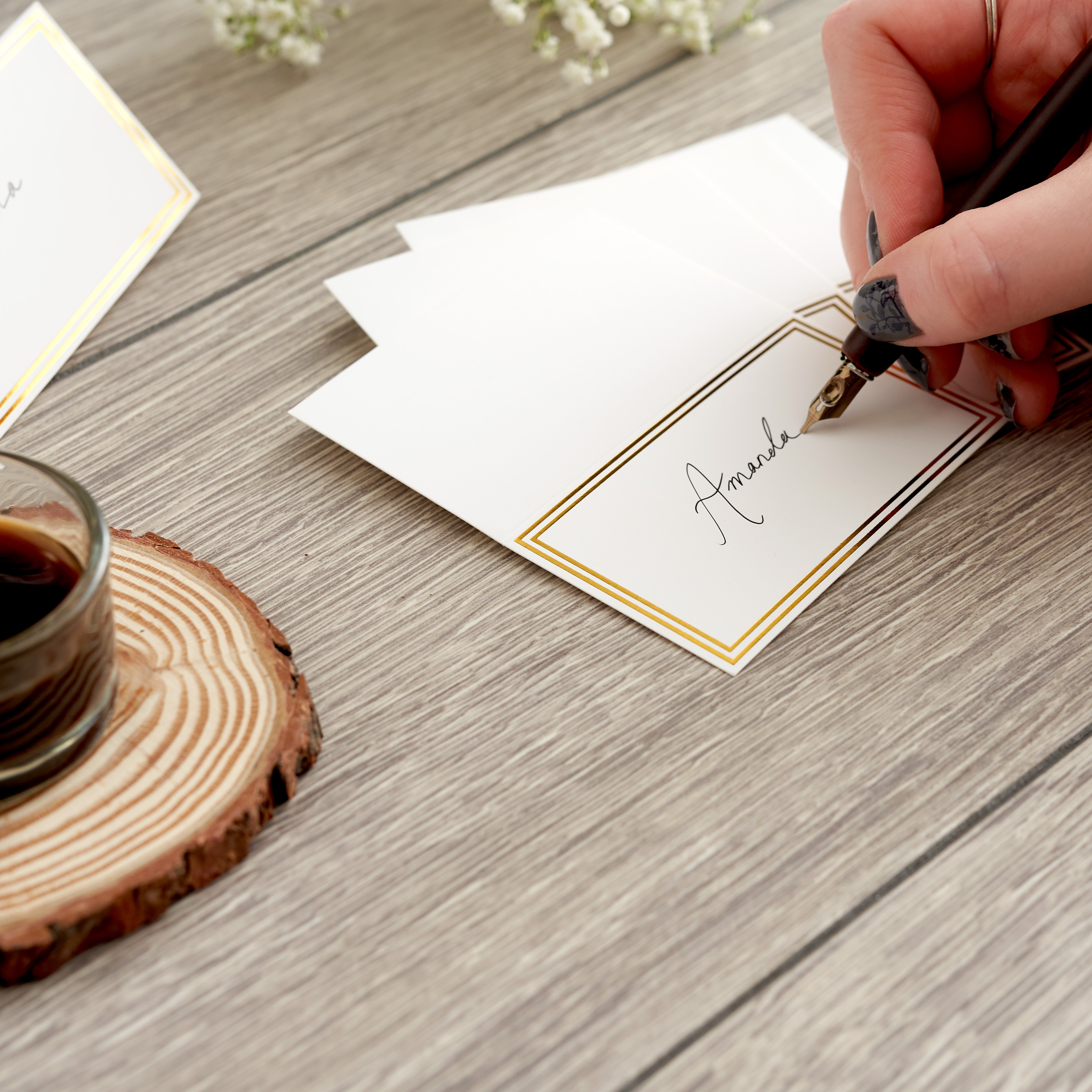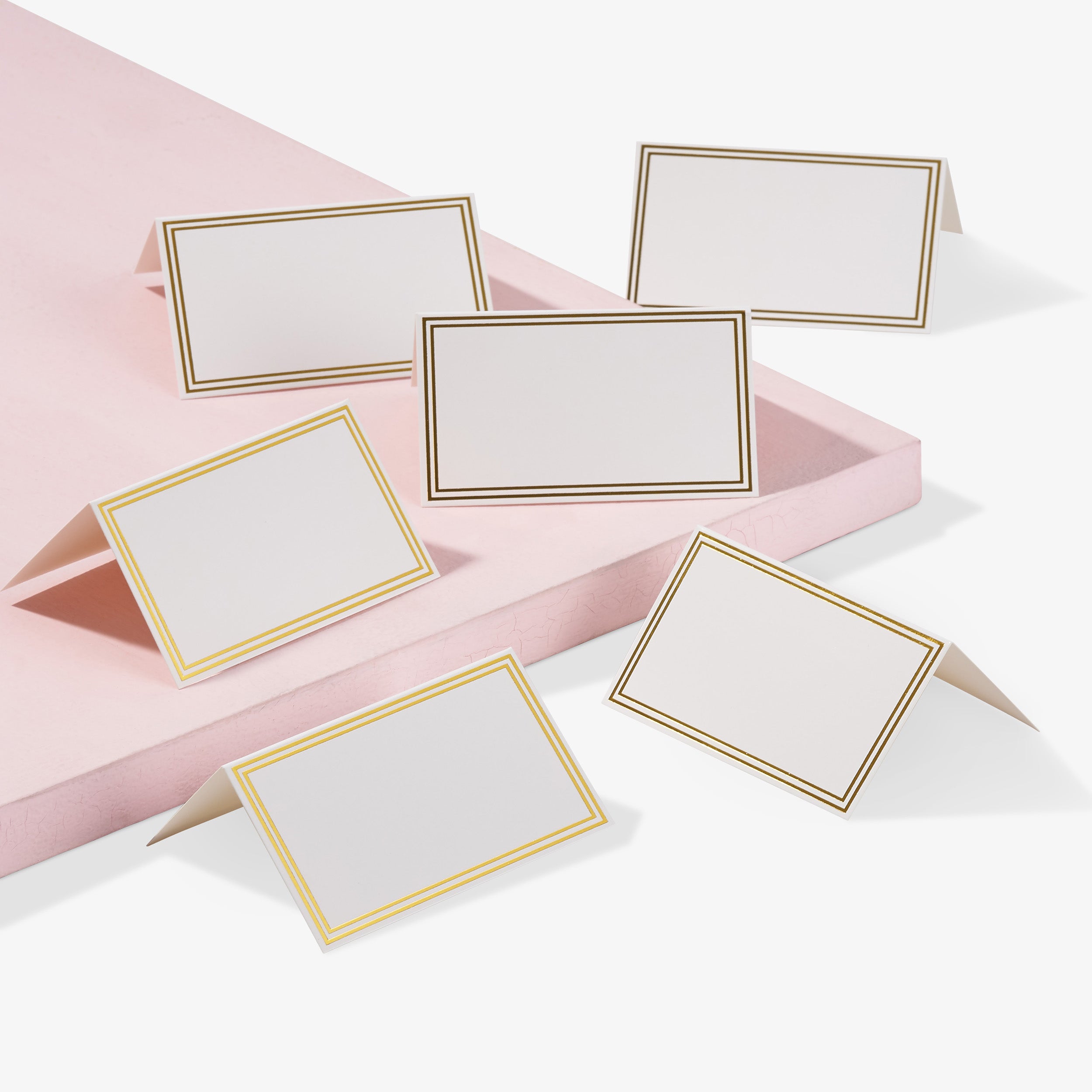 Enhance Your Event's Ambiance: Our set of Blank Wedding Place Name Cards is designed to add a touch of sophistication to your special day. Each card is adorned with a refined double gold border, enhancing the elegance of your table settings. These tastefully designed cards are perfect for creating an organized and stylish atmosphere at your wedding, banquet, or any formal event.