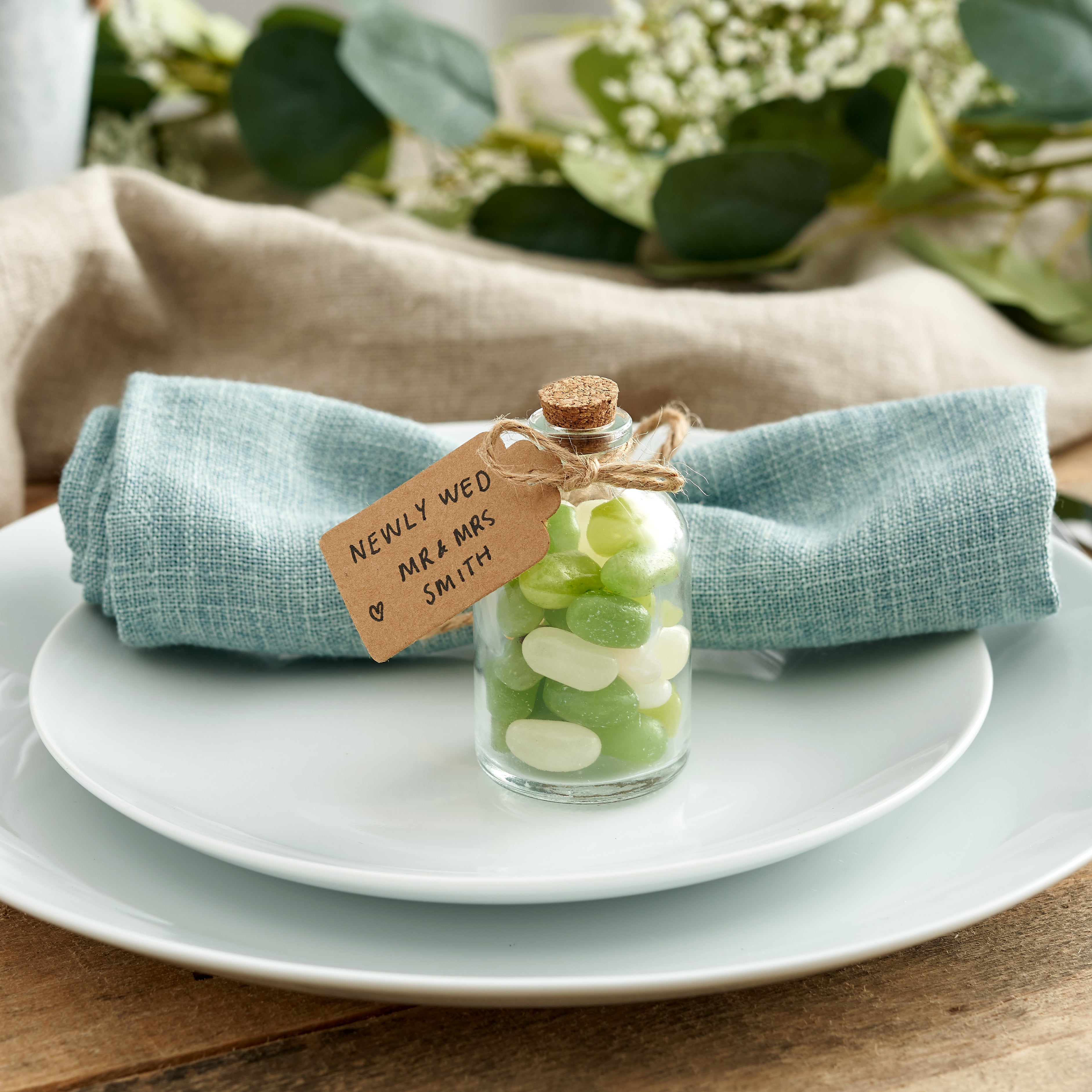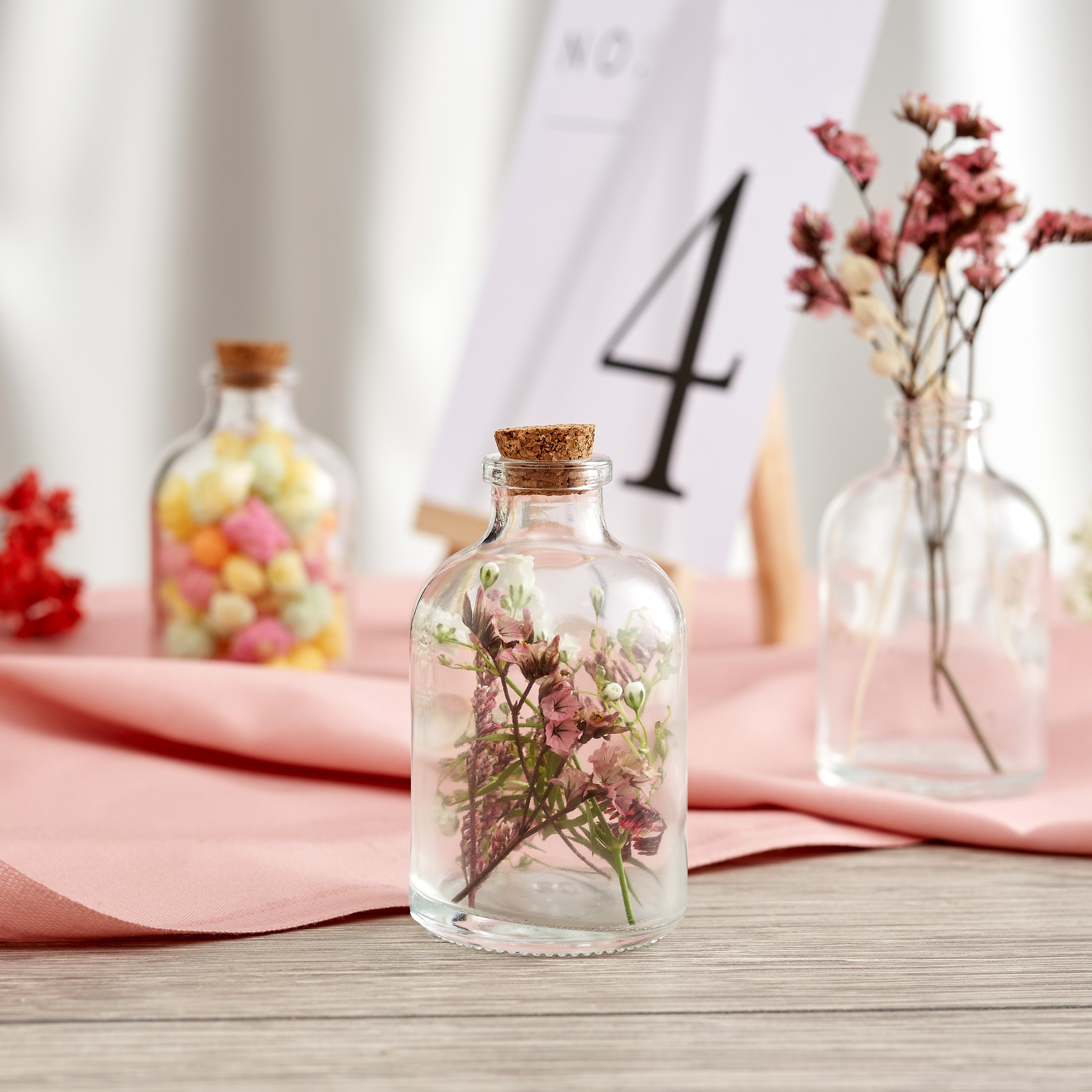 Fill with Delightful Surprises: The versatility of these mini glass jars allows you to get creative with your favours. Fill them with anything from loose tea blends and colourful candies to homemade drinks or infused oils. The cork lids not only add a rustic charm but also effectively seal in the freshness and flavours of the contents. These jars are not just limited to weddings; they are equally perfect for birthday parties, baby showers, or any festive gathering. Their adaptability makes them an excellent choice for elevating your party décor, regardless of the theme or colour scheme.
