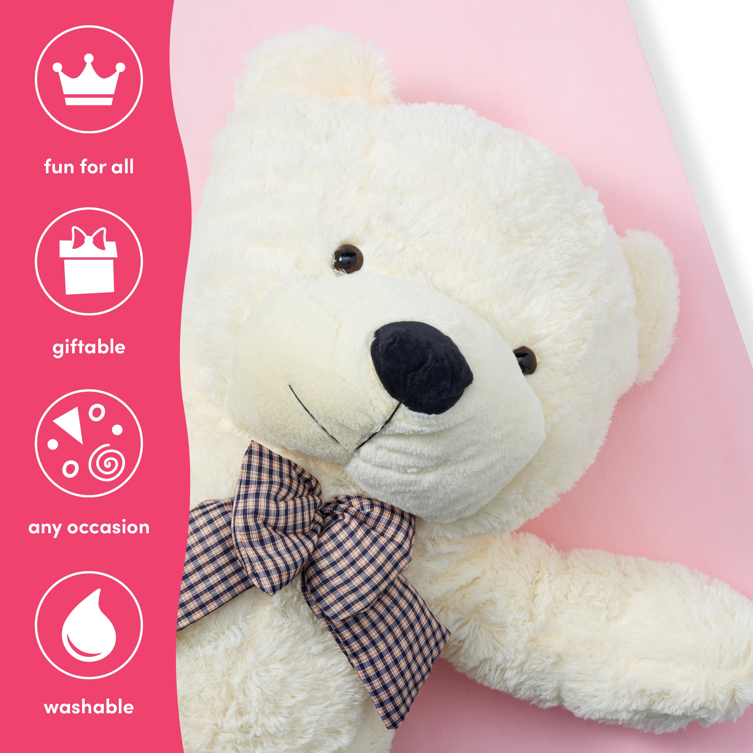 A Gentle Giant for Ultimate Comfort: Experience the joy of cuddling with our Giant White Teddy Bear, a 47-inch plush companion that's perfect for both babies and toddlers. Crafted with the utmost care, this teddy bear features super plush and irresistibly soft fur, making it an ideal bed companion and an adorable best friend. Its large size ensures that it's not just a toy, but a comforting presence that can offer hugs, warmth, and a sense of security. Whether for naptime, playtime, or just as a cosy buddy to hold, this giant teddy bear is sure to be a cherished addition to any child’s life.