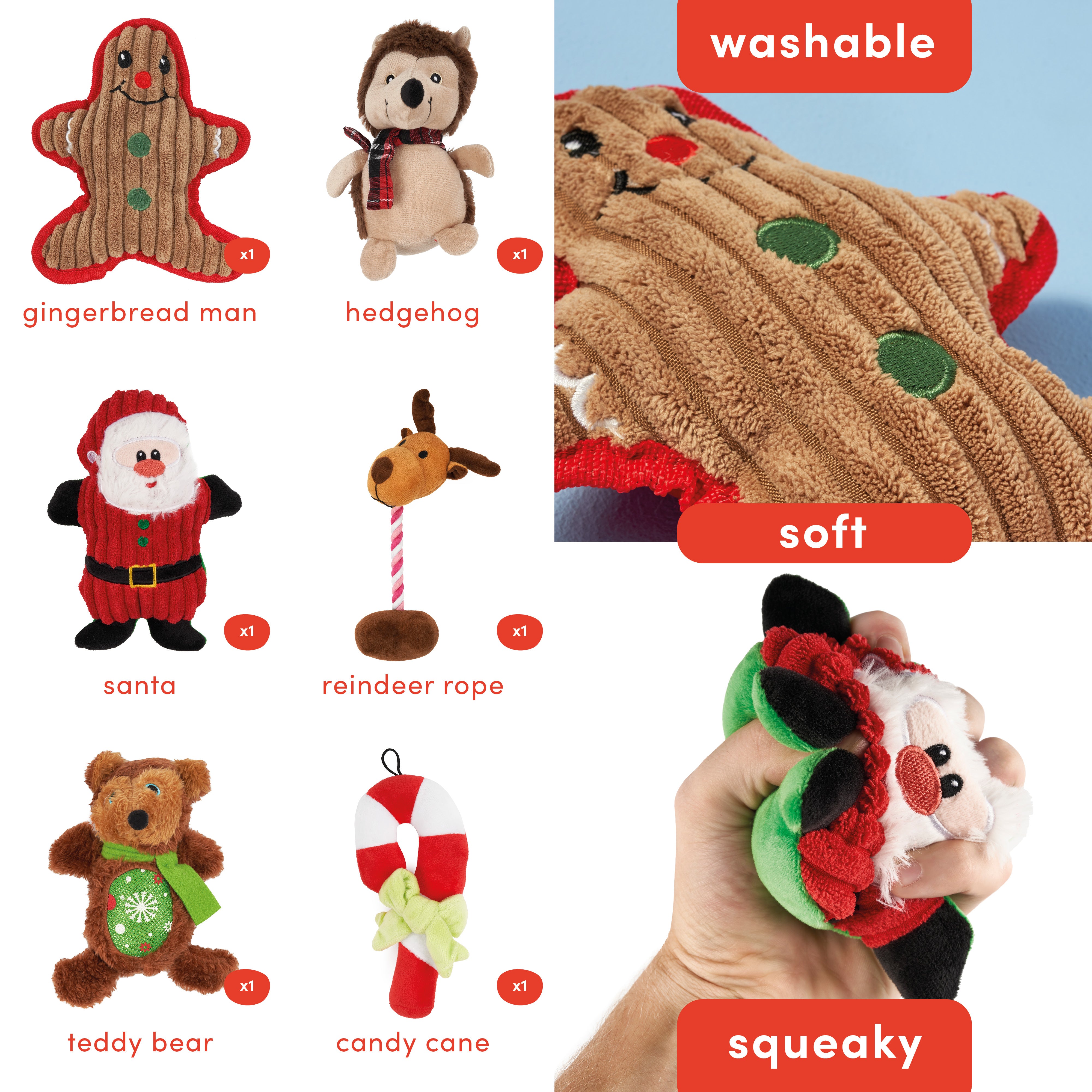 Perfect Christmas Dog Toys: Treat your pets to hours of Christmas joy with our set of 6 squeaky dog toys in assorted Xmas designs. A great idea for dog Christmas stockings and Christmas gifts for dogs.