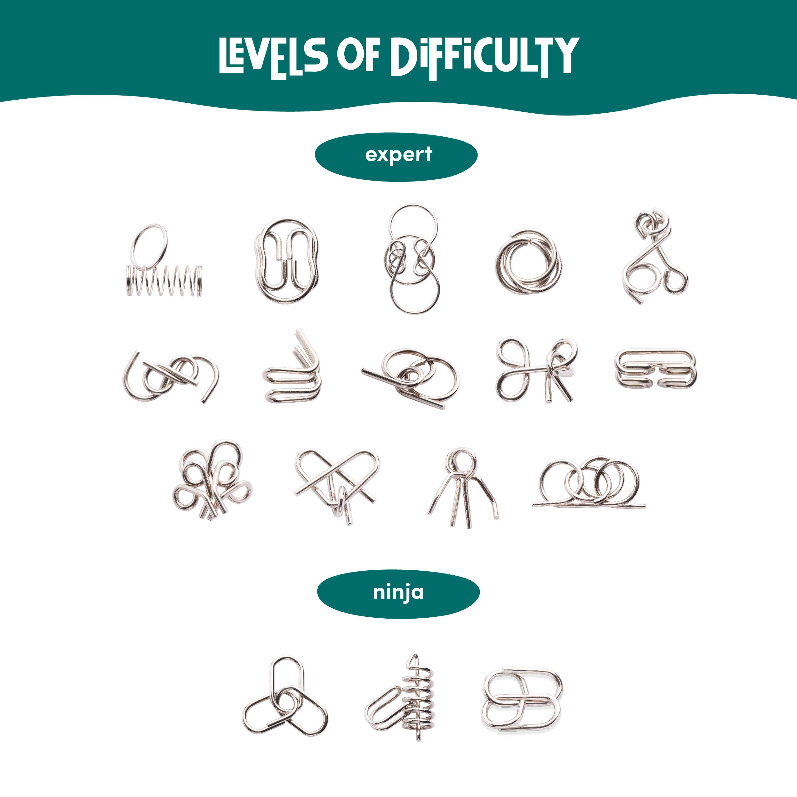 Unlock the Power of Your Mind: Our set of Metal Brain Teaser Puzzles is a gateway to a world of intellectual challenge and entertainment. These puzzles are masterfully designed to engage both kids and adults, encouraging the exercise of logical thinking, hands-on ability, spatial imagination, and creativity. Each unique puzzle presents an opportunity to sharpen the mind, develop intelligence, and enhance brain power. This collection is not just a set of puzzles; it's a tool for educational development, offering a perfect balance of learning and fun.