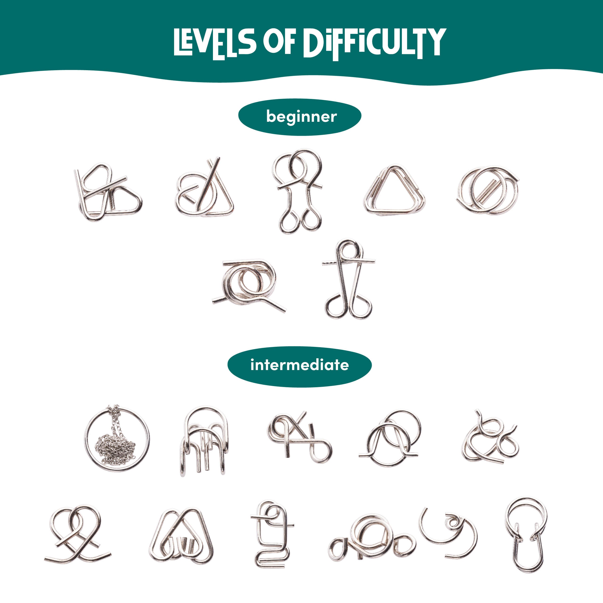 A Diverse Range of Mind-Bending Challenges: The variety within this set of different metal puzzles ensures that each experience is a new challenge. Despite their seemingly complex designs, the satisfaction of solving these puzzles is immensely rewarding, providing a sense of accomplishment and a boost in confidence. These puzzles are ideal for relaxing and destressing, as they require concentration and patience, offering a tranquil escape from the hustle and bustle of daily life. They are perfect for moments of solitude or as a shared activity with friends and family.